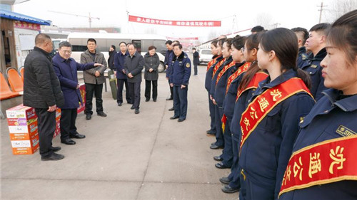 在縣公交公司,皇甫立新首先向全體干部職工致以節(jié)日的問(wèn)候,對(duì)他們一年來(lái)為全縣人民安全順利出行做出的貢獻(xiàn)表示感謝。在認(rèn)真聽(tīng)取有關(guān)負(fù)責(zé)人關(guān)于節(jié)日期間增開(kāi)班車(chē)和車(chē)次的匯報(bào)后,皇甫立新說(shuō),公交車(chē)作為公共交通運(yùn)輸體系中的重要組成部分,不僅在完善城市交通運(yùn)輸格局、方便市民出行方面發(fā)揮著重要作用,同時(shí)也是城市形象的象征。希望堅(jiān)守崗位的公交職工要繼續(xù)提供優(yōu)質(zhì)服務(wù),文明安全駕駛,為居民在春節(jié)期間走親訪(fǎng)友和安全出行提供方便、搞好服務(wù),展示出沈丘公交公司員工的良好素質(zhì)和良好形象。并叮囑公交公司負(fù)責(zé)人要合理安排好職工的工作和生活,為廣大一線(xiàn)工作人員安心工作提供堅(jiān)實(shí)的后勤保障,讓他們更加舒心愉快地服務(wù)廣大群眾。