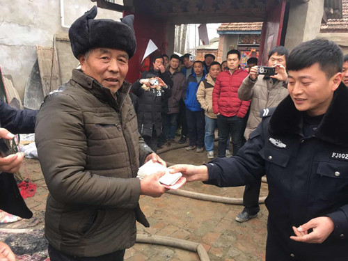 2月17日下午3時許,鄲城縣南豐鎮徐寨行政村徐大莊一村民使用地鍋后忘記滅火發生火災,鄲城縣公安局一村一警張振偉冒險進入火中,幫助轉移出1萬元現金和重要證件。