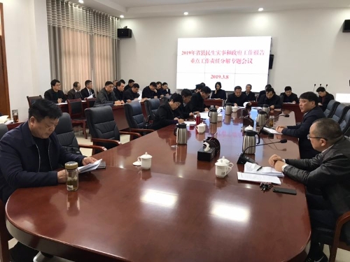 陸志杰要求各單位要強(qiáng)化責(zé)任擔(dān)當(dāng),具體方案、具體責(zé)任人,做到可分解、可督查、可考核,確保各項(xiàng)工作落細(xì)落實(shí);要精準(zhǔn)把握省、縣兩級(jí)工作要求,對(duì)持續(xù)開(kāi)展的工作要好基礎(chǔ),對(duì)明確時(shí)間、要求的工作要把握時(shí)間、節(jié)點(diǎn)做好統(tǒng)籌推進(jìn);要抓好配合,對(duì)任務(wù)分解的主責(zé)任單位要做任務(wù)的協(xié)調(diào)、統(tǒng)籌,相關(guān)責(zé)任單位要做好配合,形成部門(mén)聯(lián)動(dòng)工作機(jī)制,確保各項(xiàng)任務(wù)能夠均衡、健康、全面開(kāi)展;要做好監(jiān)督檢查,縣政府辦要形成一個(gè)督導(dǎo)、檢查、考核制度,對(duì)責(zé)任單位形成每一個(gè)月以通報(bào),每個(gè)季度要組織召開(kāi)一次匯報(bào)會(huì),聽(tīng)取完成工作進(jìn)度,確保各項(xiàng)工作能說(shuō)一件、干一件、成一件圓滿(mǎn)完成2019年省、縣民生實(shí)事和政府工作報(bào)告重點(diǎn)工作任務(wù)。