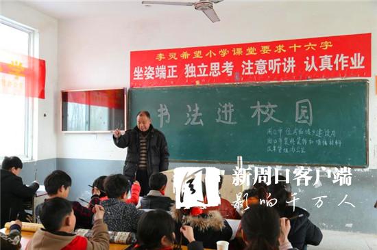 3月13日上午,來自周口市住房和城鄉建設局、周口市裝修裝飾和墻體材料改革管理辦公室的黨員和志愿者邀請中國書法家協會會員吳敬走進東新區許灣鄉李靈希望小學,為孩子們現場講授毛筆書法,受到孩子們的歡迎。周口日報·新周口客戶端記者 黃佳 攝