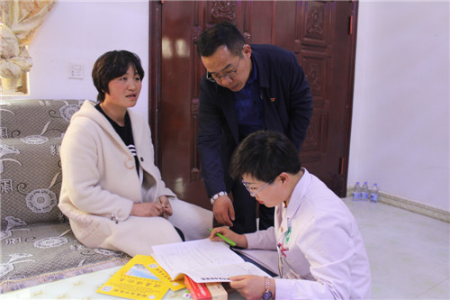 在王崗家中,專家們先后為王崗父母、妻子進行了彩超、心電圖、血壓、血糖等項目檢查,并根據檢測數據,現場分析、研究病情,做了詳細醫囑,還為他們送了包含各種項目的健康體檢表。