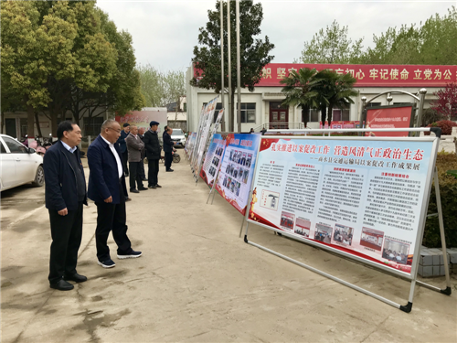 4月2日上午,商水縣紀委在黃寨鎮政府組織召開全縣以案促改通知書集中交辦暨版面巡回展活動現場會,縣紀委副書記、監委副主任王建新出席會議并講話。