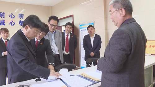 調(diào)研期間,馬軍杰一行還來到縣人民法院審判法庭訴訟服務(wù)中心的信訪接待中心、訴調(diào)對接中心、審判庭等處,與縣法院的工作人員面對面交流,了解信訪接待、便民服務(wù)、民事調(diào)解等工作的開展情況。
