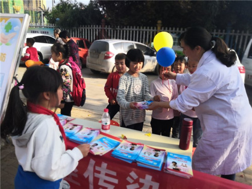 4月24日下午,周口市城鄉一體化示范區衛生計生中心、計生協在文昌幼兒園、文昌小學附近開展第33個全國兒童預防接種日、第12個全國瘧疾日暨創衛工作宣傳活動。
