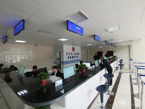 在西華縣人民法院訴訟服務(wù)中心,當(dāng)事人及社會(huì)公眾可通過(guò)訴訟服務(wù)智能系統(tǒng)的自助終端進(jìn)行網(wǎng)上立案、案件查詢(xún)、訴訟引導(dǎo)、閱卷申請(qǐng)、聯(lián)系法官和查看法庭位置、開(kāi)庭公告等信息,并可打印文書(shū)樣式。