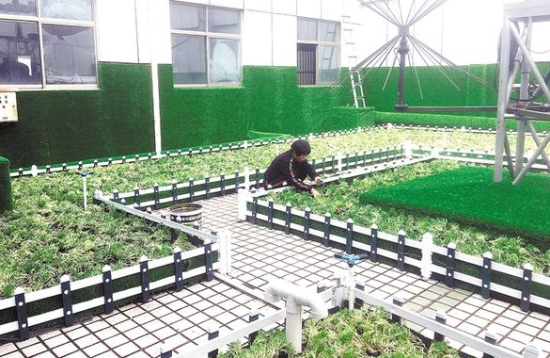 開發區積極推進樓頂綠化工程,實現了防治大氣污染、美化環境、隔熱降溫的效果。圖為開發區綜合辦公大樓上鋪種的佛甲草。