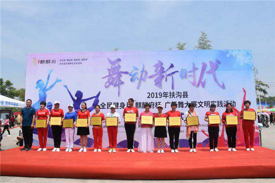 5月12日上午,扶溝縣2019年“全民健身月”廣場舞大賽文明實踐活動在縣人民公園開幕。縣委常委、宣傳部長尚守永,縣政協副主席孫春花等出席開幕式。