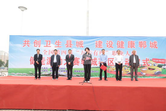 5月15日上午,鄲城縣在世紀廣場隆重舉行以“共創衛生縣城建設健康鄲城”為主題的全國第四屆“萬步有約”職業人群健走激勵大賽鄲城賽區啟動儀式。縣政府副縣長肖煒,縣政府辦副主任楊培爭,縣衛健委主任付登霄、副主任禹廣民,縣疾控中心主任張吉志等出席啟動儀式。楊培爭主持啟動儀式。