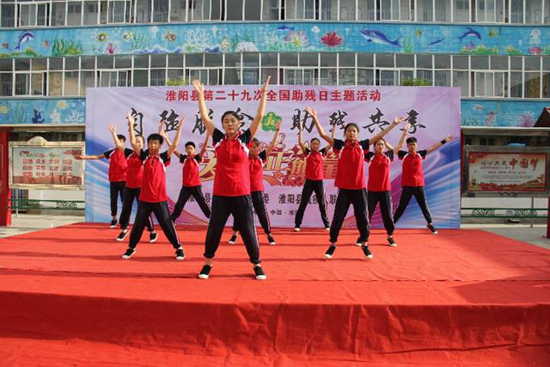 活動儀式上,縣特殊教育學校學生和縣音樂家協會文藝志愿者分別為觀眾表演了精彩的文藝節目。縣特殊教育學校的學生首先表演了舞蹈《海草舞》,文藝志愿者周紅春演唱了歌曲《愛的奉獻》、《天南地北淮陽人》、李泉稼小朋友演唱了豫劇《洼洼地里好莊稼》,淮陽特殊教育學校學生表演了節目《感恩的心》。精彩的表演贏得了現場觀眾的陣陣掌聲。