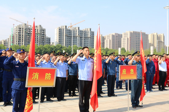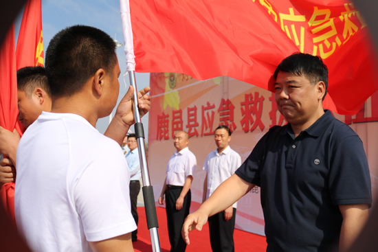 5月30日上午,鹿邑縣在縣文化中心廣場舉行應急救援隊授旗宣誓儀式,縣委常委、常務副縣長陸志杰現場為全縣新整合的15支專、兼職應急救援隊伍授旗,各應急救援隊伍在推選代表的帶領下,共同舉起右手進行了莊嚴的宣誓儀式。