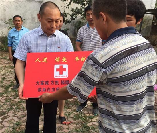 西華縣副縣長張翠霞、西華縣紅十字會秘書長趙紅霞等人聞訊趕來,參加簡短的捐款儀式,并代表縣政府和紅十字會對方凱的善舉表示感謝。