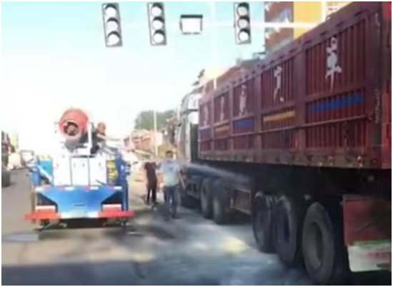 7月6日早上6時40分,一輛貨車由東至西行駛到西扶超限檢測站負責的環保檢測卡點時輪胎突然起火,執法人員發現后,立即用車載喇叭喊話提醒司機停車,此時車輛正好停在值勤卡點紅綠燈處,一旦火勢不受控制,將給司機及周邊群眾帶來不可預測的危險與損失,帶班站長李建東一邊組織人員進行救火,一邊通知站長劉洪亮。得到警情后,劉洪亮站長立即組織增援,同時指令張光輝、劉伯倫駕駛站內高壓撒水車迅速趕往事故現場,經過共同努力,著火處被撲滅,避免了一場火災事故的發生。事后,貨車司機十分感動,拉著執法人員的手深表謝意。