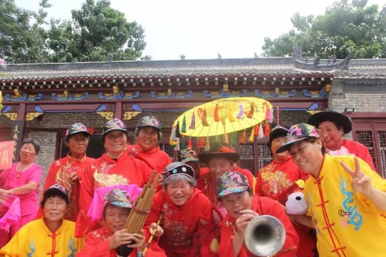 歡快的音樂響起,一群群老人們載歌載舞,翩翩而來。她們有的劃著旱船,有的揮著鞭子,有的叼著煙斗,有的抬著轎子,一招一式,都是那么專業。