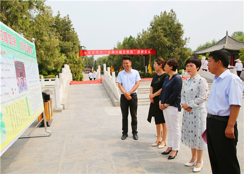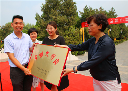 7月11日,鹿邑縣在太清宮景區舉行“全國巾幗文明崗”授牌儀式,市婦聯副主席孫媛媛、縣人大常委會副主任劉銀出席儀式并向獲得“全國巾幗文明崗”榮譽稱號的太清宮景區管理委員會授牌??h文化廣電和旅游局黨組書記張峰主持授牌儀式。