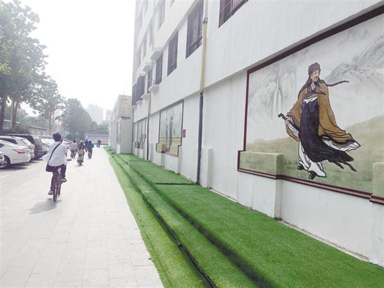 記者通過走訪發現,與周口六一路小學門前的育新路一樣,我市不少小街道兩側有了文化墻。這些文化墻內容新穎,表現形式多樣,美感十足。
