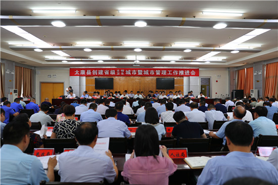 7月23日,太康縣在綜合議室一樓會議室召開創建省級文明、衛生城市暨城市管理工作推進會。李錫勇、劉海艇、張思民、王建林等副處級以上領導干部出席會議,縣直單位負責人、各部委辦常務副職、鄉鎮黨委書記、城管局班子成員,毛莊鎮全體班子成員,城關鎮全體班子成員及各居委會負責人參加會議。