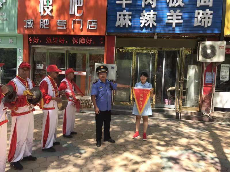 為鞏固創衛成果,提高城市精細化管理水平,川匯區持續開展“紅黑旗”評選活動。7月22日,在陣陣鑼鼓聲中,該區城管人員又為6家紅旗商戶、6家黑旗商戶分別懸掛紅黑旗。