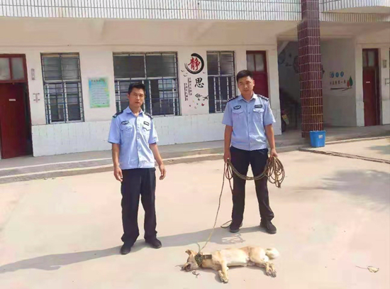 7月22日上午,西華縣公安局聶堆鎮派出所接到聶堆鎮前梁小學老師報警稱:該校有一條瘋狗,嚴重影響校園內人員人身安全。