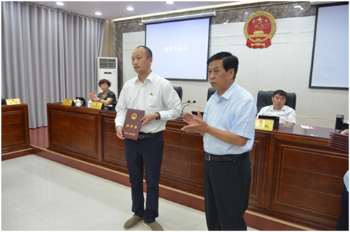 會議組織新任命的國家機關(guān)工作人員向憲法宣誓,李國際為新任命的國家機關(guān)工作人員頒發(fā)了任命書。