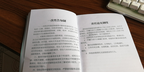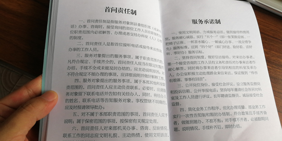 制度規定,服務對象到縣委組織部辦事、咨詢或來電時,首個接待的工作人員必須熱情、禮貌、耐心接待辦理或引領交給相關職責科室辦理。凡符合規定,手續齊全的,限時辦結,手續不全未能及時辦結的,要主動向服務對象說明原因……縣委組織部常務副部長薛斌告訴記者:“通過扎牢制度的籠子,讓部機關工作人員做到一張笑臉迎客,一把椅子讓座,一杯茶水暖心,一顆誠心辦事,一流業績爭先的服務標準,切實達到門好進、臉好看、話好聽,事好辦的目的。”