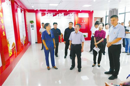 皇甫立新首先來到槐店回族鎮海樓社區。海樓社區位于縣城中心,是全縣政治經濟文化中心。走進社區,路兩旁紅旗飄飄,新時代、新思想、新目標、新征程等具有時代特色的宣傳畫繪制在兩邊的墻壁上。社區廣場上“百村綜合治理辦公室”的牌子特別醒目,社區辦公室有關百村綜合治理的規章制度一應俱全。皇甫立新對海樓社區的工作給予充分肯定,并就工作中存在的問題給予指正,要求社區黨支部突出建好、管好、用好村委黨員會議室,突出主題,唱響主旋律。