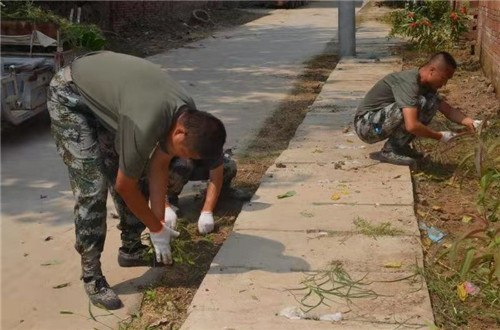 這是扶溝縣役前教育訓練的一部分,走出訓練場,通過臨行前的一次特殊勞動,作為對家鄉的一場告別,也是配合扶溝創文工作、助力人居環境整治工作的一項務實舉措。