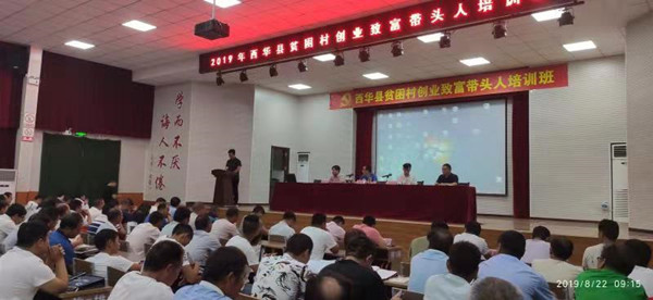 8月22日上午,西華縣扶貧辦、西華縣農民科技培訓學校聯合舉行2019年度貧困村創業致富帶頭人培訓班。培訓班儀式上,對涌現出的20名貧困村創業致富帶頭人進行了表彰,3名創業致富帶頭人代表作了典型發言,西華縣農民科技培訓學校校長作了表態發言。