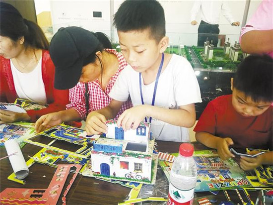 9月7日,約100名周口報業商水小記者在商水縣商寧路建業城售樓部參加“愛家愛商水”手工拼裝房大賽活動。