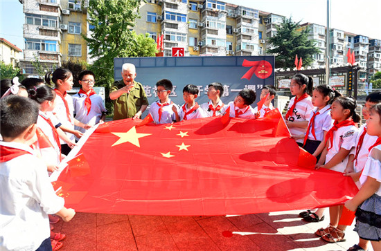 升旗儀式結束后,王文華為孩子講述國旗故事,一堂生動、鮮活的愛國主義教育課讓孩子們受益匪淺。“祝福祖國,生日快樂”“祖國萬歲”……站在國旗下,聽著王文華的講述,孩子們情不自禁表達對祖國母親的祝福,有心的孩子家長拍下一張張孩子與國旗合影的照片,發在微信朋友圈,紅色主題的圖文得到一片點贊。