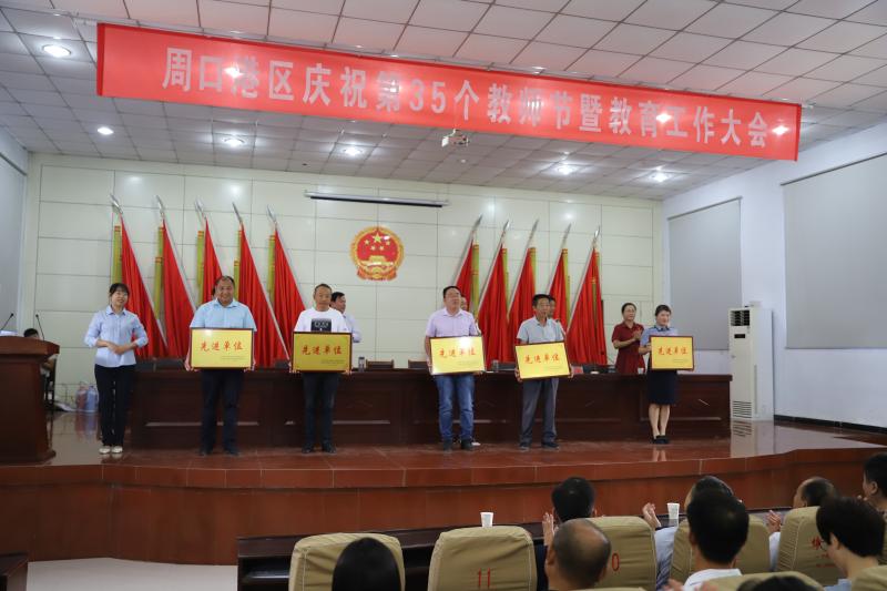 9月10日,周口港區召開慶祝第35個教師節暨教育工作大會,回顧總結上一學年港區教育工作,部署新學年工作任務,大會對港區優秀教育工作者和單位進行隆重表彰。港區管委會主任程若光在會上對港區教育工作者提出殷切期望,港區黨委委員張東立,黨委委員、管委會副主任劉學慶,副調研員李素芹,港區公安分局局長何學民參加會議。