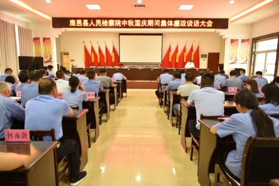 中秋節(jié)、國(guó)慶節(jié)即將來臨,為加強(qiáng)節(jié)日期間黨風(fēng)廉政建設(shè),以實(shí)際行動(dòng)展現(xiàn)檢察隊(duì)伍遵規(guī)守紀(jì)的過硬作風(fēng),9月 9日,鹿邑縣人民檢察院召開中秋、國(guó)慶“雙節(jié)”期間集體廉政談話大會(huì)。