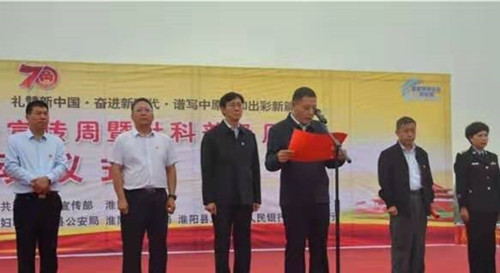 9月16日上午,2019年淮陽縣網絡安全宣傳暨社科普及周啟動儀式在羲皇文化廣場舉行。啟動儀式上,縣委書記馬明超宣布2019年淮陽縣網絡安全宣傳暨社科普及周啟動。縣委常委、宣傳部長謝留定,縣人大常委會副主任張凌君,縣政協副主席李守運,縣總工會主席丁永華,縣公安局長李鳳麗等出席活動。