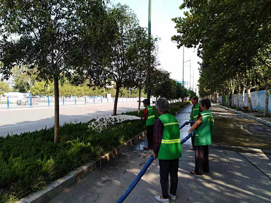 在國慶節即將到來之際,為打造整潔、文明、靚麗、和諧的城市環境,連日來,市城管局在中心城區組織開展了以“扮靚城市,為國慶增光添彩”為主題的活動,營造了良好的節日氛圍。圖為園林綠化工人在周口大道流沙河北段清洗綠化帶。記者 李一 攝