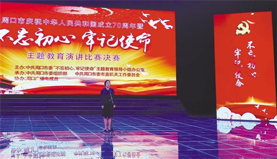 開發(fā)區(qū)積極響應(yīng)號召,組織人員參加全市慶祝中華人民共和國成立70周年暨“不忘初心、牢記使命”主題教育演講比賽。開發(fā)區(qū)機關(guān)第一黨支部黨員李媛媛經(jīng)過激烈角逐,順利進(jìn)入決賽。記者 王泉林 攝