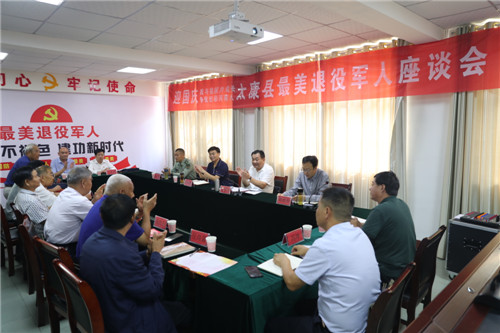 9月27日上午,在“十一”國慶節到來臨之際,太康縣委書記王國璽組織召開了“迎國慶、我與祖國共成長、爭做出彩河南人”太康縣最美退役軍人座談會。縣委副書記、政法委書記劉海艇,縣委常委、副縣長韓維俊,縣武裝部政委郭立君,縣人大常委會原主任盧長慶、縣政協原主席許賢信,縣人大常委會原副主任劉世范、王清賢、周心亮、張松石、任尚富等縣處級退役軍人老干部及縣退役軍人事務局班子成員、太康縣首屆“最美退役軍人”參加座談會。