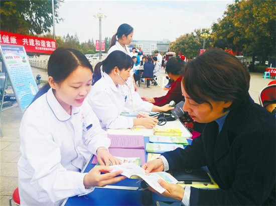 10月10日是世界精神衛生日,當日上午9時至11時,周口市衛健委組織我市28家醫院在川匯區文化廣場舉辦主題為“心理健康社會和諧,我行動”的義診活動。活動現場,100多名醫務人員向群眾提供免費疾病咨詢,宣傳普及精神衛生健康醫學知識,紛紛開出身心健康處方,受到群眾的熱烈歡迎。