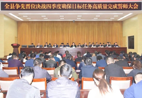 乘著周口市2019年第三季度項目觀摩的東風,扶溝吹響了決戰第四季度、奮力推動經濟社會高質量發展的“沖鋒號”。10月21日,扶溝縣召開爭先晉位決戰四季度確保全縣目標任務高質量完成誓師大會,深入貫徹習近平總書記在河南考察調研指示精神,動員全縣上下進一步認清形勢,堅定信心,鼓足干勁,加大力度,大干苦干,決戰決勝,全力以赴做好第四季度工作,確保全年目標任務高質量完成。張穎波、詹凱、姜永來、張建中等縣四個班子領導出席會議。縣委副書記、政法委書記詹凱主持會議。
