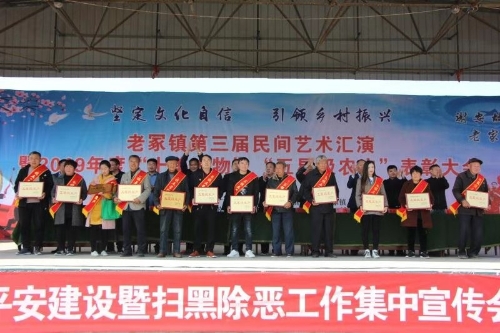 今年以來,老冢鎮(zhèn)黨委政府堅持以黨的十九大精神為指導(dǎo),廣泛開展形式多樣的民間藝術(shù)匯演以及先進典型的選樹活動,弘揚了社會主義核心價值觀和中華優(yōu)秀傳統(tǒng)文化,使廣大群眾的獲得感和幸福感得到顯著增強。下一步,該鎮(zhèn)黨委、政府將進一步加強資源統(tǒng)籌,創(chuàng)新載體和形式,繼續(xù)開展形式多樣的群眾文化系列活動,持續(xù)提升廣大群眾的思想道德素質(zhì),推進良好的家風(fēng)、民風(fēng)、社風(fēng)持續(xù)向前發(fā)展。 活動現(xiàn)場還開展了老冢鎮(zhèn)平安建設(shè)暨掃黑除惡宣傳,設(shè)立了咨詢臺,發(fā)放宣傳資料5000多份,形成了大宣傳、大表彰、大激勵的濃厚氛圍,為實現(xiàn)鄉(xiāng)村振興凝聚力量。