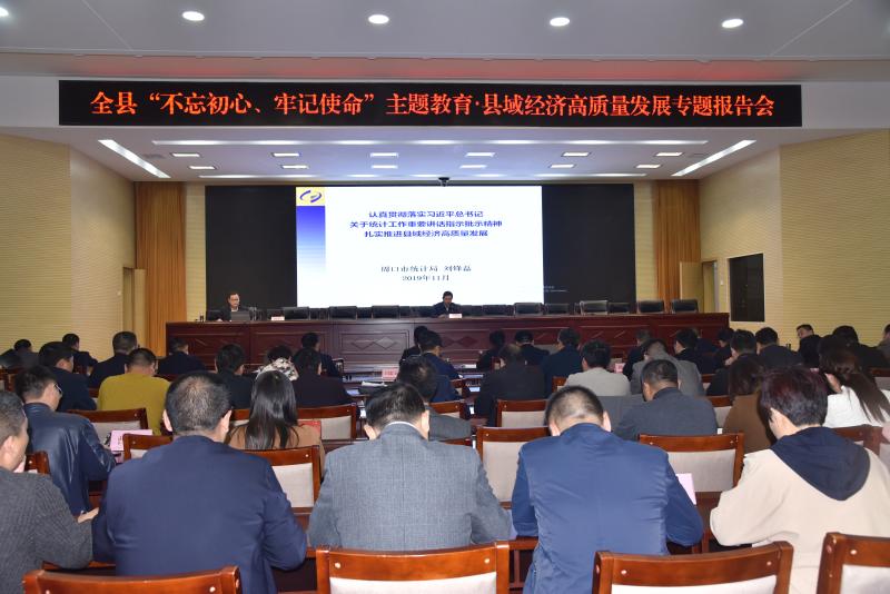 11月14日,扶溝縣召開“不忘初心、牢記使命”主題教育·縣域經濟高質量發展專題報告會,特邀市統計局黨組成員、總統計師劉鋒磊作專題輔導。張穎波、姜永來、張建中、段然、王霄靈、趙紅亮、閆忠玉、尚守永、曹來凌等縣領導聆聽報告。縣委常委、常委副縣長王霄靈主持會議。