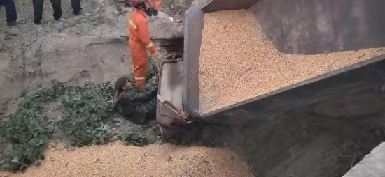 接警后,鄲城消防大隊立即出動3輛消防車15名指戰員前往處置。經偵查發現,側翻車輛是一輛農用三輪車,車上拉有約2噸散裝玉米。現場玉米灑落一地,駕駛員約六十歲,左腿被農用三輪車前輪壓住,無法脫身,加之即將天黑,當時天氣較冷,如不及時處置,后果不堪設想。