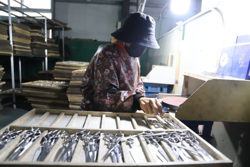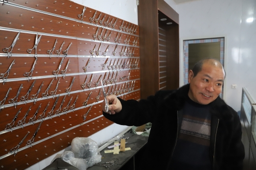 “我也是從小就外出,一直在江蘇蘇州發(fā)展,做刀剪十幾年了。現(xiàn)在家鄉(xiāng)環(huán)境好,回來發(fā)展比在南方還有前途。”今年49歲的陳政治老家是虎崗鄉(xiāng)陳莊村。被虎崗鄉(xiāng)黨委政府的誠意所感動,他很樂意回鄉(xiāng)發(fā)展,因為房租價格低、務(wù)工人員穩(wěn)定,營商環(huán)境又好,所以他帶著自己的外甥楊亞杰和技術(shù)團(tuán)隊回到老家鄲城,還能助力家鄉(xiāng)經(jīng)濟(jì)發(fā)展。陳政治說,他的廠子所生產(chǎn)的東升、jack、亞寶等品牌刀剪全部銷往全國高檔理發(fā)店,產(chǎn)品供不應(yīng)求。像這樣的高檔刀剪生產(chǎn)廠家,在中原地帶極少。剛投產(chǎn)幾個月,他已經(jīng)接到了來自韓國、日本等地的訂單。