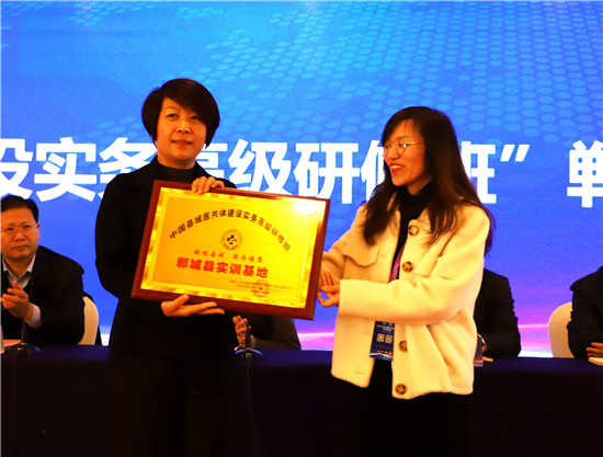 開幕式上,與會(huì)領(lǐng)導(dǎo)分別就“遵義院士工作中心·鄲城站”、“國(guó)家遠(yuǎn)程醫(yī)療與互聯(lián)網(wǎng)醫(yī)學(xué)中心協(xié)作單位”、“中國(guó)縣域醫(yī)共體建設(shè)實(shí)務(wù)高級(jí)研修班培訓(xùn)基地”、“國(guó)家十三五重大研發(fā)計(jì)劃——國(guó)家心腦血管高危人群疾病綜合篩查與防控及衛(wèi)生經(jīng)濟(jì)學(xué)研究項(xiàng)目”進(jìn)行了授牌、揭牌。