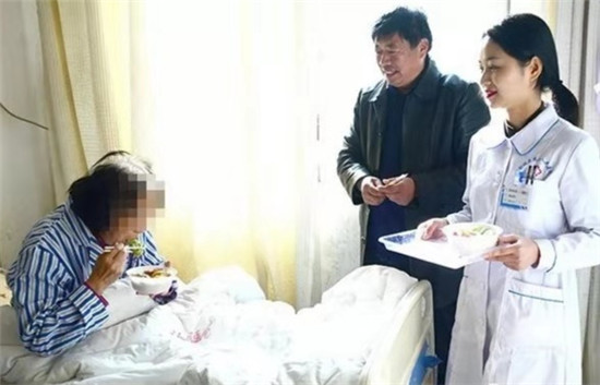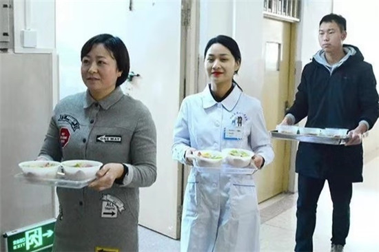 餃子煮好,盛入碗內,端入病房,親手送到患者手中,看到患者品嘗餃子時的開心樣子,醫護人員從心里笑到了臉上。