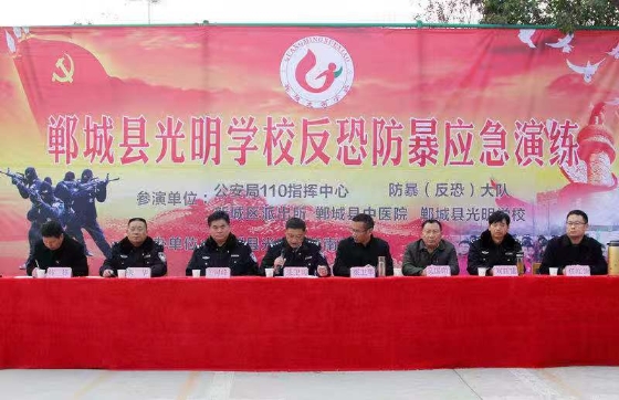 演練結束后,縣反恐辦主任、公安局副政委朱衛兵說,此次演練貼近實戰,既鍛煉了學校安保隊伍,又增強了師生安全防范意識,檢驗了光明學校切實可行的反恐防暴預案,進一步提高了學校反恐防暴等突發事件反應和處置能力。結合鄲城反恐實際,朱衛兵強調,要增強反恐防暴意識,提高政治站位,時刻繃緊學校反恐處突這根弦;要加強反恐隊伍建設,縣公安反恐隊伍要時刻保證黨和人民需要時拉得出,沖得上,打得贏,勇作為;要牢固樹立平安底線思維,嚴厲打擊暴恐犯罪行為;要充分認識做好應急處理突發性反恐工作的極端重要性,著力提高處置突發事件和暴恐行為的能力,增強師生反恐防暴意識;要進一步強化學校安保隊伍建設,努力打造一支素質過硬、反應迅速、處置有力的應急處突精干隊伍。