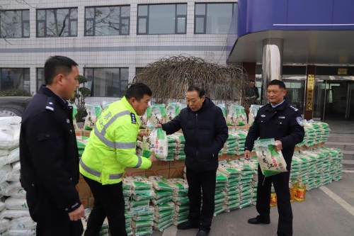 王超一行首先來到了府尚茗郡項目建設工地,詳細詢問建筑工人的工作環境、工資待遇,以及生活保障等情況,并叮囑工人們,天氣寒冷,室外作業時要時刻注意安全和保暖,防止摔傷和凍傷。為環衛大隊和交警大隊送去了米、面、油等慰問品,對他們付出的辛勤勞動表示感謝。