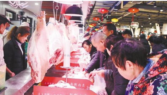1月18日上午,在中心城區萬果園超市內的2020年春節政府平價豬肉專柜前,擠滿了購買豬肉的市民。春節將至,為保障節日市場供應,我市從1月17日至23日的早上9時至下午4時在中心城區20家超市將投放300噸應急保障協議豬肉,供市民購買。