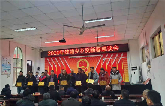 最后,鄉(xiāng)黨委書記高毓明向與會(huì)鄉(xiāng)賢代表送上了新春祝福,并介紹了獨(dú)塘鄉(xiāng)2020年發(fā)展規(guī)劃和未來工作思路,希望有資金、懂技術(shù)的成功人士回鄉(xiāng)發(fā)展創(chuàng)業(yè)。高毓明書記表示,獨(dú)塘鄉(xiāng)的每一分進(jìn)步、每一份成績的取得,都離不開鄉(xiāng)賢們的鼎力支持,希望各位鄉(xiāng)賢有空常回家看看,積極為家鄉(xiāng)發(fā)展獻(xiàn)言獻(xiàn)策,為建設(shè)美麗和諧新獨(dú)塘奉獻(xiàn)自己的一份力量。
