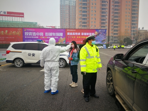 1月27日,寧洛高速沈丘縣收費站口,地方交警和醫護工作人員正在對每一臺下高速的車輛上的司乘人員進行體溫測量,檢查行駛證、駕駛證和身份證。目前,周口市境內各收費站和服務區設立衛生檢疫站,配備體檢測溫設備,對每一臺下高速的車輛上的司乘人員進行體溫測量,檢查行駛證、駕駛證和身份證。同時,要求各單位每天要對設施和停靠交通工具消毒,室內要保持通風。