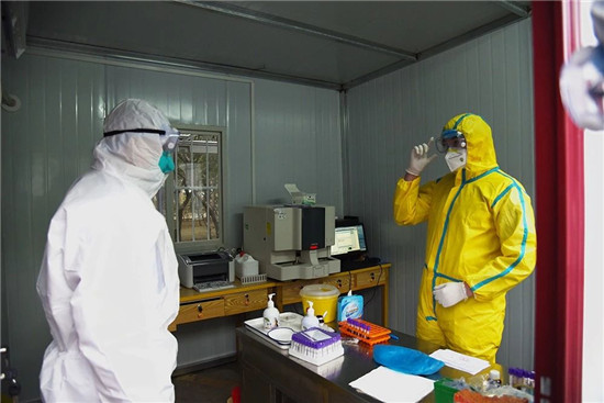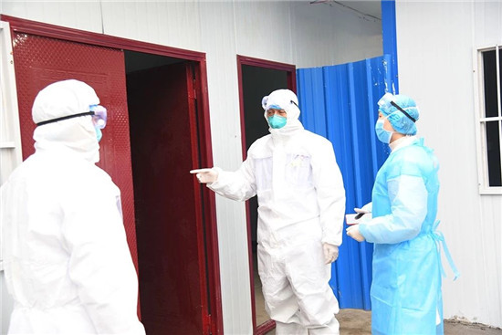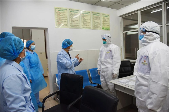 1月27日上午,鄲城縣人民醫院院長于健、書記高飛身著隔離服深入到發熱門診隔離區、感染科隔離病房及診室,安排部署防控工作,指出:按照控感工作要求,為防止交叉感染,從即日起,發熱門診、感染科病房、CT室、放射科、檢驗科等防疫一線工作人員,24小時工作在一線,直到疫情結束。