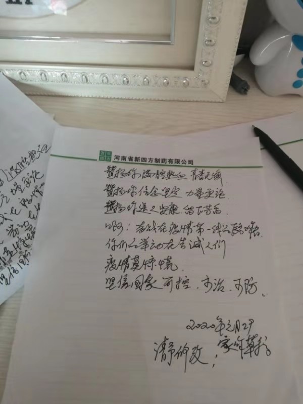 從事醫藥行業的王化民告訴記者,每天通過新聞看到奮戰在疫情一線的白衣天使,不畏辛勞和危險,真的令人感動。“我平時愛好寫詩。如今,真的不知道怎樣表達對他們的尊敬之情,只能以詩言志。”